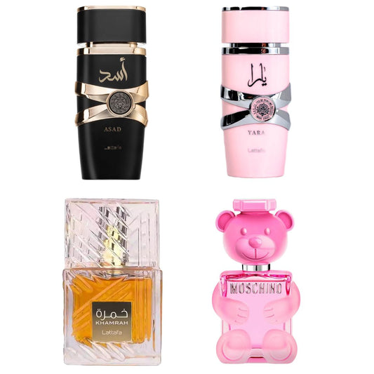 COMBO EXCLUSIVO LATTAFA KHAMRAH + ASAD + YARA + MOSCHINO TOY 2 BUBBLE GUM